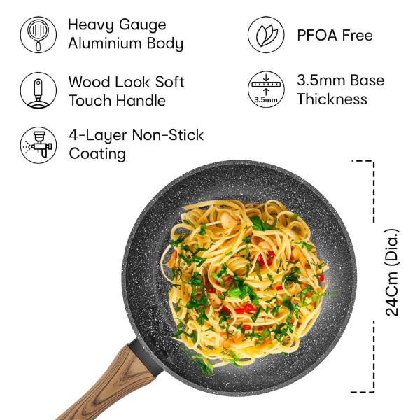 Anko 24cm Aluminium 4 Layer Non-Stick Frypan – Wood Look